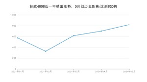 2021年5月,标致4008销量为820辆,同比增长5.4%,环比增长16.98%。1-5月份,标致4008销量为3037辆,同比增长8.23%。在最近1年中,标致4008销量在2021年05月达到最高,销量为820辆。