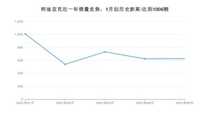 2021年5月,柯迪亚克销量为627辆,同比下降61.37%,环比增长0.48%。1-5月份,柯迪亚克销量为3527辆,同比下降37.65%。在最近1年中,柯迪亚克销量在2021年01月达到最高,销量为1006辆。