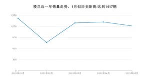 2021年5月,楼兰销量为1212辆,同比下降4.57%,环比下降8.04%。1-5月份,楼兰销量为6003辆,同比增长14.91%。在最近1年中,楼兰销量在2021年01月达到最高,销量为1417辆。
