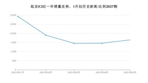 2021年5月,起亚K3销量为1641辆,同比下降38.17%,环比增长12.47%。1-5月份,起亚K3销量为9380辆,同比下降27.93%。在最近1年中,起亚K3销量在2021年01月达到最高,销量为2927辆。