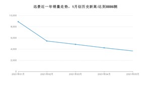 2021年5月,远景销量为3660辆,同比下降48.62%,环比下降13.37%。1-5月份,远景销量为27053辆,同比下降10.89%。在最近1年中,远景销量在2021年01月达到最高,销量为8886辆。