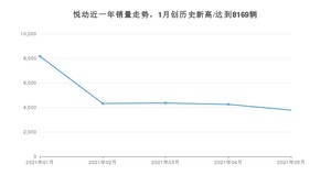 2021年5月,悦动销量为3776辆,同比下降36.63%,环比下降11.01%。1-5月份,悦动销量为24859辆,同比下降1.11%。在最近1年中,悦动销量在2021年01月达到最高,销量为8169辆。
