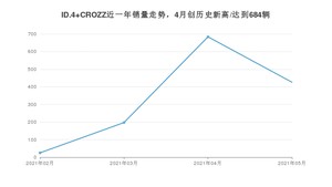 2021年5月,ID.4 CROZZ销量为426辆,环比下降37.72%。1-5月份,ID.4 CROZZ销量为1332辆,在最近1年中,ID.4 CROZZ销量在2021年04月达到最高,销量为684辆。