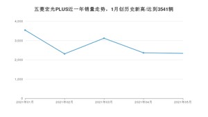 2021年5月,五菱宏光PLUS销量为2336辆,同比下降22.65%,环比下降1.18%。1-5月份,五菱宏光PLUS销量为13671辆,同比下降3.35%。在最近1年中,五菱宏光PLUS销量在2021年01月达到最高,销量为3541辆。