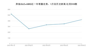 2021年5月,奔驰GLE AMG销量为423辆,同比增长40.07%,环比增长21.55%。1-5月份,奔驰GLE AMG销量为1883辆,同比增长123.9%。在最近1年中,奔驰GLE AMG销量在2021年01月达到最高,销量为519辆。