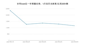 2021年5月,吉利icon销量为1154辆,同比下降59.94%,环比下降10.54%。1-5月份,吉利icon销量为7429辆,同比下降22.95%。在最近1年中,吉利icon销量在2021年01月达到最高,销量为2351辆。