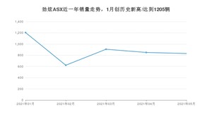 2021年5月,劲炫ASX销量为831辆,同比下降7.87%,环比下降2.24%。1-5月份,劲炫ASX销量为4415辆,同比增长21.63%。在最近1年中,劲炫ASX销量在2021年01月达到最高,销量为1205辆。