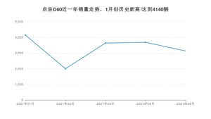 2021年5月,启辰D60销量为3133辆,同比下降3.87%,环比下降14.86%。1-5月份,启辰D60销量为16590辆,同比增长13.72%。在最近1年中,启辰D60销量在2021年01月达到最高,销量为4140辆。