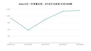 2021年5月,Aion V销量为1452辆,环比增长3.35%。1-5月份,Aion V销量为5577辆,在最近1年中,Aion V销量在2021年05月达到最高,销量为1452辆。