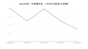 2021年5月,BJ 212销量为3辆,同比下降97.41%,环比下降40%。1-5月份,BJ 212销量为29辆,同比下降94.68%。在最近1年中,BJ 212销量在2021年01月达到最高,销量为8辆。