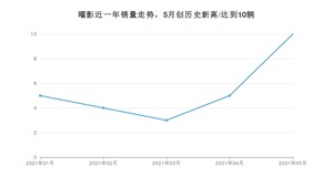 2021年5月,曜影销量为10辆,同比增长66.67%,环比增长100%。1-5月份,曜影销量为27辆,同比增长50%。在最近1年中,曜影销量在2021年05月达到最高,销量为10辆。