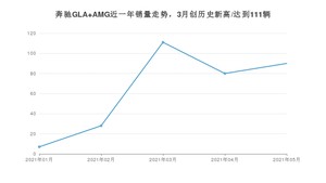 2021年5月,奔驰GLA AMG销量为90辆,同比增长4%,环比增长12.5%。1-5月份,奔驰GLA AMG销量为316辆,同比增长6%。在最近1年中,奔驰GLA AMG销量在2021年03月达到最高,销量为111辆。