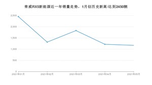 2021年5月,荣威RX5新能源销量为1166辆,同比增长177.62%,环比下降3.95%。1-5月份,荣威RX5新能源销量为7966辆,同比增长446.36%。在最近1年中,荣威RX5新能源销量在2021年01月达到最高,销量为2450辆。