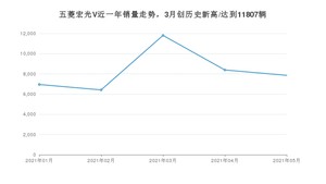 2021年5月,五菱品牌总体销量达到61334辆,其中五菱宏光V销量达到7852辆,占品牌总销量的12.8%。