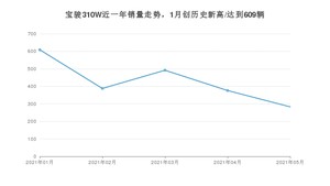 2021年5月,宝骏310W销量为283辆,同比下降77.1%,环比下降24.73%。1-5月份,宝骏310W销量为2148辆,同比下降66.17%。在最近1年中,宝骏310W销量在2021年01月达到最高,销量为609辆。