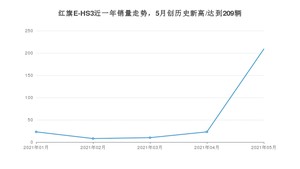 2021年5月,红旗E-HS3销量为209辆,同比增长945%,环比增长808.7%。1-5月份,红旗E-HS3销量为273辆,同比增长200%。在最近1年中,红旗E-HS3销量在2021年05月达到最高,销量为209辆。