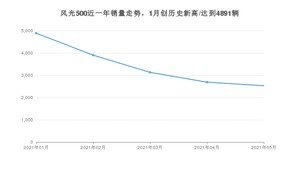 2021年5月,风光500销量为2531辆,环比下降5.95%。1-5月份,风光500销量为17149辆,在最近1年中,风光500销量在2021年01月达到最高,销量为4891辆。