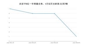 2021年5月,启辰T70销量为1辆,同比下降99.85%,1-5月份,启辰T70销量为20辆,同比下降99.28%。在最近1年中,启辰T70销量在2021年01月达到最高,销量为7辆。