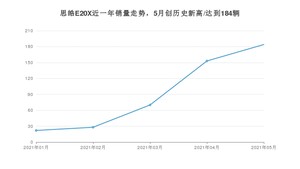 2021年5月,思皓E20X销量为184辆,同比增长1%,环比增长20.26%。1-5月份,思皓E20X销量为457辆,同比增长251.54%。在最近1年中,思皓E20X销量在2021年05月达到最高,销量为184辆。