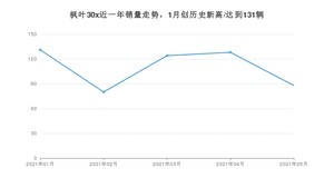 2021年5月,枫叶30x销量为88辆,同比增长238.46%,环比下降31.25%。1-5月份,枫叶30x销量为551辆,同比增长760.94%。在最近1年中,枫叶30x销量在2021年01月达到最高,销量为131辆。