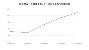 2021年5月,风光E1销量为225辆,同比增长2%,环比增长20.97%。1-5月份,风光E1销量为696辆,同比增长4%。在最近1年中,风光E1销量在2021年05月达到最高,销量为225辆。