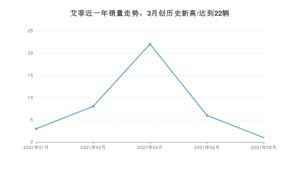 2021年5月,艾菲销量为1辆,同比下降93.75%,环比下降83.33%。1-5月份,艾菲销量为40辆,同比下降6.98%。在最近1年中,艾菲销量在2021年03月达到最高,销量为22辆。