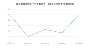 2021年5月,国机智骏GX5销量为152辆,同比增长11.76%,环比增长204%。1-5月份,国机智骏GX5销量为443辆,同比增长42.44%。在最近1年中,国机智骏GX5销量在2021年05月达到最高,销量为152辆。