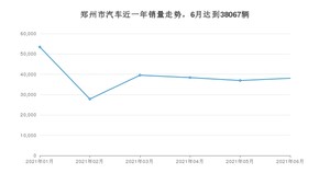 2021年6月,郑州市汽车总销量为38067辆,同比下降0.33%,环比增长3.04%。1-6月份,郑州市总销量为234192辆,同比增长37.15%。在最近1年中,郑州市销量在2021年01月达到最高,销量为53438辆。