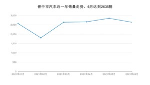 2021年6月,晋中市汽车总销量为2635辆,同比增长6.68%,环比下降7.48%。1-6月份,晋中市总销量为15147辆,同比增长22.93%。在最近1年中,晋中市销量在2021年05月达到最高,销量为2848辆。