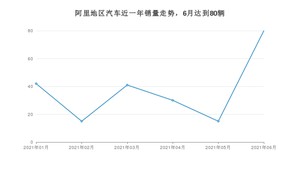 2021年6月,阿里地区汽车总销量为80辆,同比增长433.33%,环比增长433.33%。1-6月份,阿里地区总销量为223辆,同比增长227.94%。在最近1年中,阿里地区销量在2021年06月达到最高,销量为80辆。