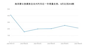2021年6月,海西蒙古族藏族自治州汽车总销量为212辆,同比下降13.47%,环比下降15.87%。1-6月份,海西蒙古族藏族自治州总销量为1429辆,同比下降3.12%。在最近1年中,海西蒙古族藏族自治州销量在2021年01月达到最高,销量为408辆。