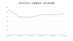 2021年6月,林芝市汽车总销量为138辆,同比下降31%,环比增长4.55%。1-6月份,林芝市总销量为797辆,同比下降12.22%。在最近1年中,林芝市销量在2021年01月达到最高,销量为163辆。