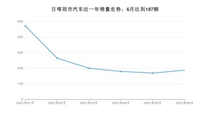 2021年6月,日喀则市汽车总销量为187辆,同比下降31.25%,环比增长11.31%。1-6月份,日喀则市总销量为1468辆,同比下降10.05%。在最近1年中,日喀则市销量在2021年01月达到最高,销量为471辆。