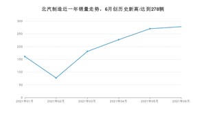 在国内市场上,北汽制造在2021年6月的销量为278辆,同比增长6.51%,环比增长2.96%。1-6月份,北汽制造累计销量为1194辆,较去年同期增长6.61%。