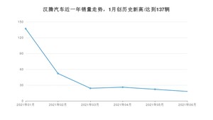 在国内市场上,汉腾汽车在2021年6月的销量为18辆,同比下降89.66%,环比下降18.18%。1-6月份,汉腾汽车累计销量为279辆,较去年同期下降82.68%。