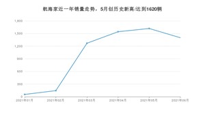 2021年6月,航海家销量为1401辆,环比下降13.52%。1-6月份,航海家销量为6032辆,在最近1年中,航海家销量在2021年05月达到最高,销量为1620辆。
