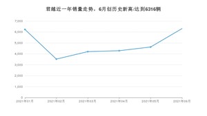 2021年6月,君越销量为6316辆,同比增长39.46%,环比增长36.5%。1-6月份,君越销量为29189辆,同比增长52.07%。在最近1年中,君越销量在2021年06月达到最高,销量为6316辆。
