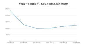 2021年6月,博越销量为12337辆,同比下降15.37%,环比增长6.75%。1-6月份,博越销量为79961辆,同比增长3.79%。在最近1年中,博越销量在2021年01月达到最高,销量为23461辆。