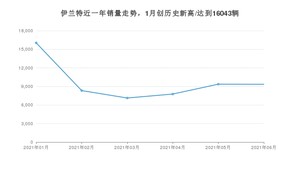 2021年6月,伊兰特销量为9342辆,环比下降0.21%。1-6月份,伊兰特销量为57971辆,在最近1年中,伊兰特销量在2021年01月达到最高,销量为16043辆。