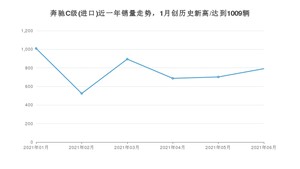 2021年6月,奔驰C级(进口)销量为791辆,同比增长25.16%,环比增长12.68%。1-6月份,奔驰C级(进口)销量为4607辆,同比增长19.76%。在最近1年中,奔驰C级(进口)销量在2021年01月达到最高,销量为1009辆。