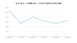 2021年6月,宝马1系销量为3298辆,同比增长1.35%,环比增长21.29%。1-6月份,宝马1系销量为21321辆,同比增长27.07%。在最近1年中,宝马1系销量在2021年01月达到最高,销量为5318辆。