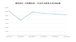 2021年6月,桑塔纳销量为15608辆,同比增长17.81%,环比下降3.01%。1-6月份,桑塔纳销量为95667辆,同比增长37%。在最近1年中,桑塔纳销量在2021年01月达到最高,销量为18201辆。