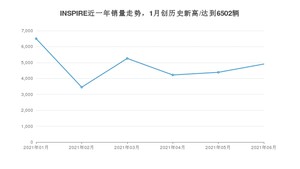 2021年6月,INSPIRE销量为4906辆,同比增长23.45%,环比增长11.86%。1-6月份,INSPIRE销量为28724辆,同比增长71.88%。在最近1年中,INSPIRE销量在2021年01月达到最高,销量为6502辆。