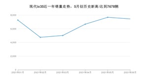 2021年6月,现代ix35销量为7442辆,同比增长318.8%,环比下降3.07%。1-6月份,现代ix35销量为38833辆,同比增长67.39%。在最近1年中,现代ix35销量在2021年05月达到最高,销量为7678辆。
