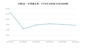 2021年6月,名爵5销量为5723辆,环比下降5.47%。1-6月份,名爵5销量为38846辆,在最近1年中,名爵5销量在2021年01月达到最高,销量为10522辆。