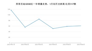 2021年6月,英菲尼迪QX60销量为61辆,同比下降67.55%,环比增长3.39%。1-6月份,英菲尼迪QX60销量为429辆,同比下降51.36%。在最近1年中,英菲尼迪QX60销量在2021年01月达到最高,销量为117辆。