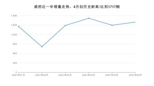 2021年6月,威然销量为1595辆,同比增长4.52%,环比增长6.69%。1-6月份,威然销量为8566辆,同比增长348.25%。在最近1年中,威然销量在2021年04月达到最高,销量为1717辆。