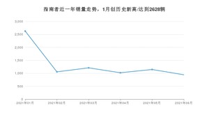 2021年6月,指南者销量为943辆,同比下降44.82%,环比下降17.79%。1-6月份,指南者销量为8006辆,同比下降9.56%。在最近1年中,指南者销量在2021年01月达到最高,销量为2628辆。
