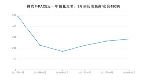 2021年6月,捷豹F-PACE销量为281辆,同比下降27.58%,环比增长6.84%。1-6月份,捷豹F-PACE销量为1652辆,同比下降19.61%。在最近1年中,捷豹F-PACE销量在2021年01月达到最高,销量为490辆。