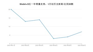 2021年6月,Model S销量为7辆,同比下降90.79%,环比增长75%。1-6月份,Model S销量为61辆,同比下降74.26%。在最近1年中,Model S销量在2021年01月达到最高,销量为20辆。